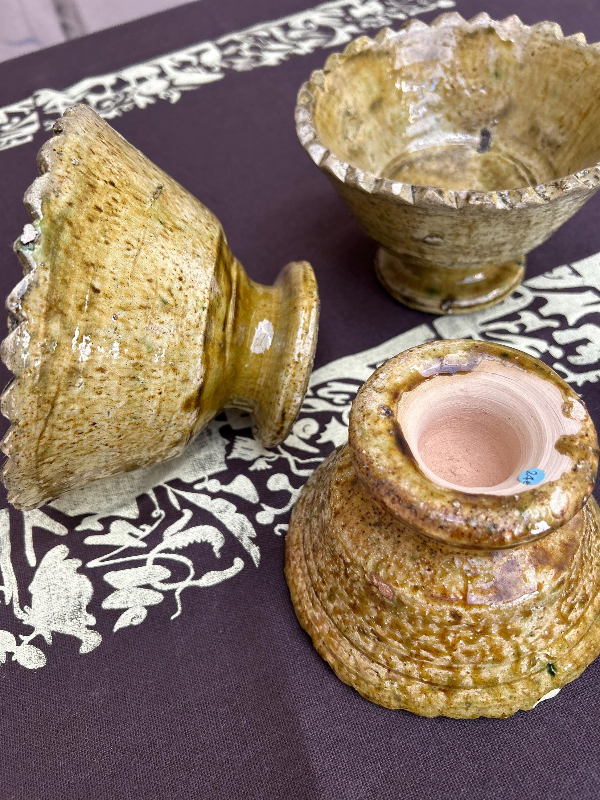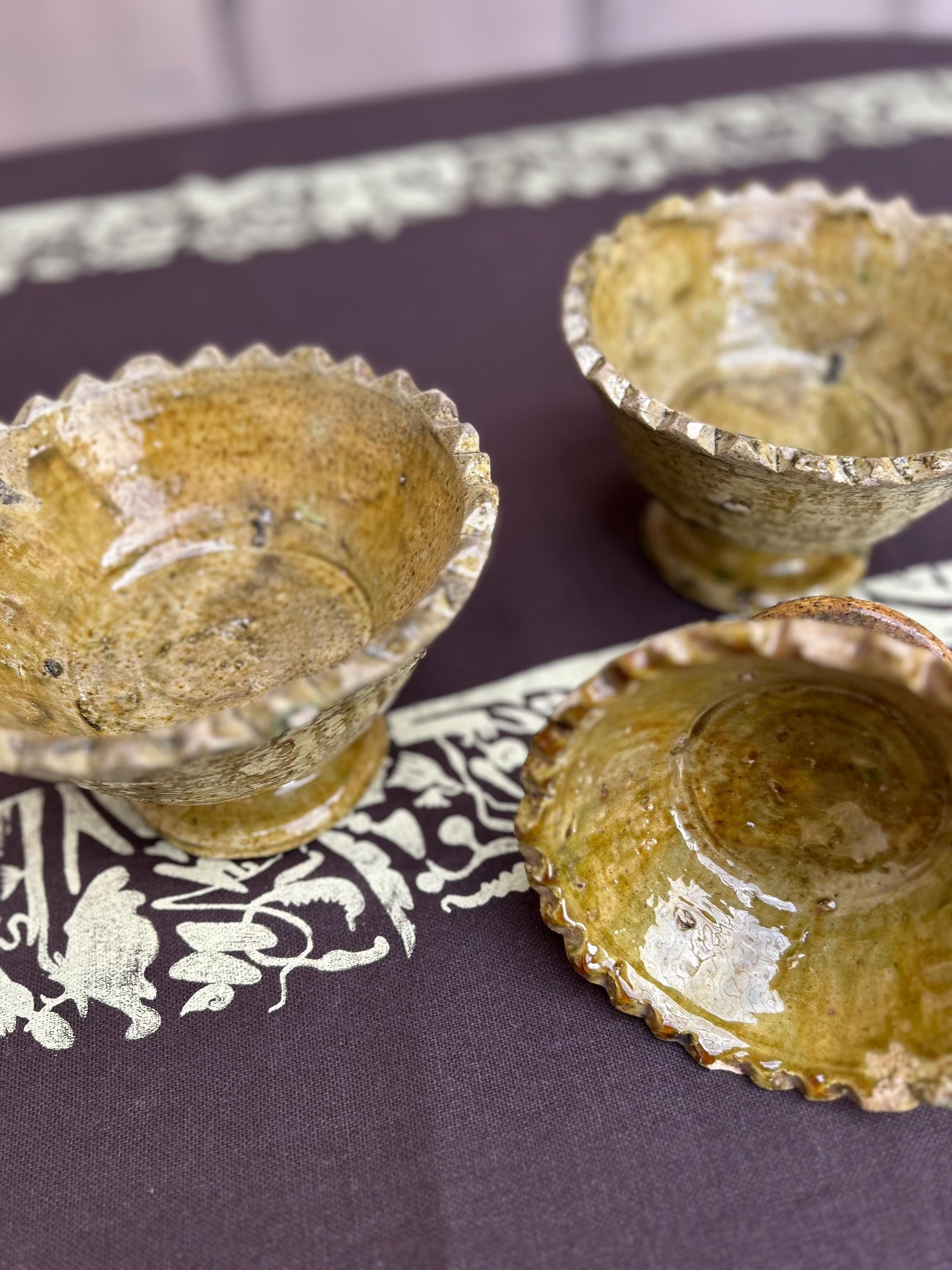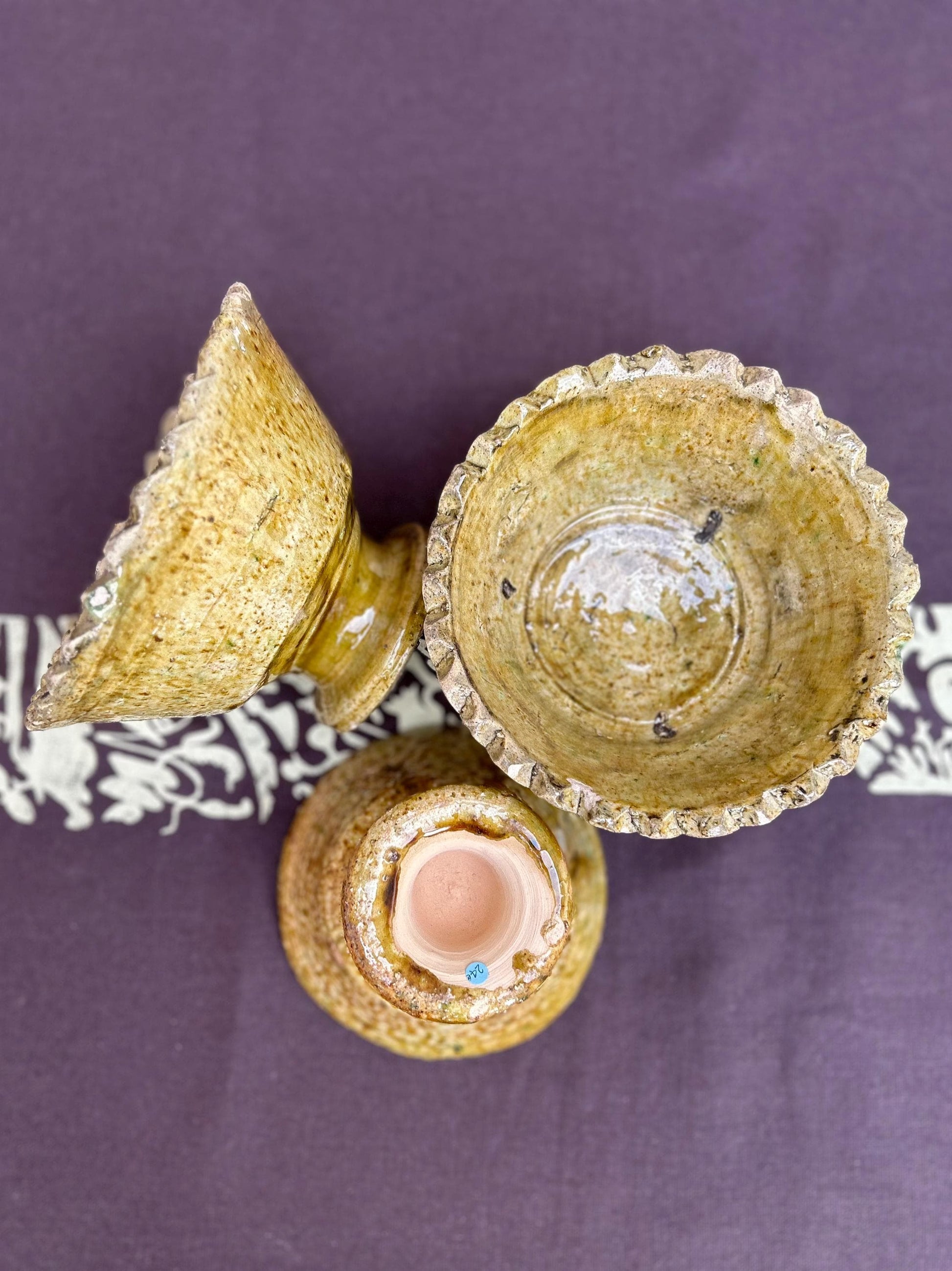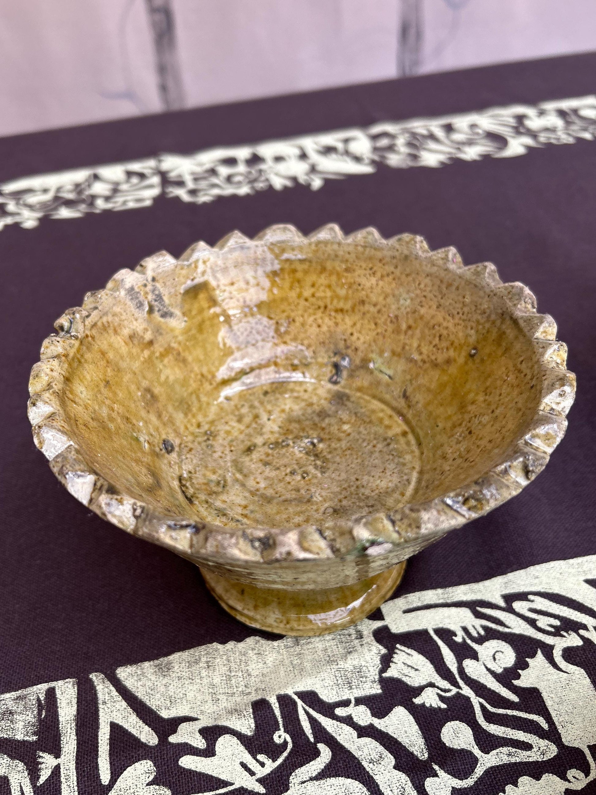 Tamegroute is a village located in the Draa River valley in southern Morocco, just before the immense Sahara. In the Berber language, Tamegroute means ‘last place before the desert’. Written in Berber: ⵜⴰⵎⴳⵔⵓⵜ The color and texture is a result of the particular alchemy created by the potters of Tamegroute and remains a family affair handed down through the generations as each pottery piece is completely unique and no two are ever the same. Tamegroute pottery are true showpieces showing that even imperfect can be perfect. Please note that the traditional method in which the plates are fired involves stacking which result in tiny ‘scars’ in the glaze making each plate unique. Wabi sabi– Discovering the beauty in the imperfect.