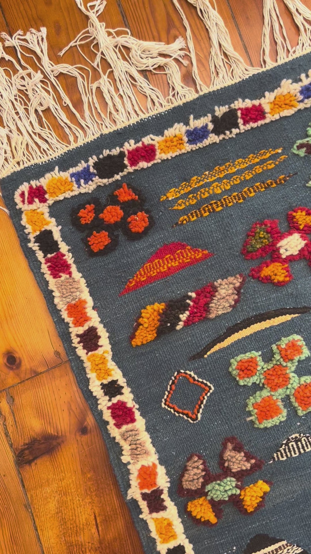 The decorative motifs are geometric and organized according to an irregular but distinguishable symmetry. We can find, even mixed together, lines, squares and checkerboards, rhombuses, triangles, crosses, together with figures of natural inspiration. The mix of symbols and colors makes them sometimes similar to large patchworks or creative mosaics. The dimensions vary from small "prayer" to large formats and runners.